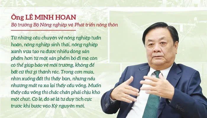 Từ những câu chuyện về nông nghiệp tuần hoàn, nông nghiệp sinh thái, nông nghiệp xanh vừa tạo ra được nhiều dòng sản phẩm hơn từ một sản phẩm bỏ đi mà còn có thể giúp bảo vệ môi trường, không để bất cứ thứ gì thành rác. Trong cơn mưa, nhìn xuống đất thì thấy bùn, nhưng nếu nhướng mắt ra xa lại thấy cầu vồng. Muốn thấy cầu vồng thì chắc chắn phải chịu khó một chút. Có lẽ, đó sẽ là tư duy tích cực trước khi bước vào Kỷ nguyên mới.